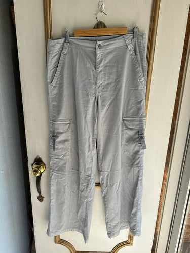 12/Large high-rise, wide leg cargo pant in light gray